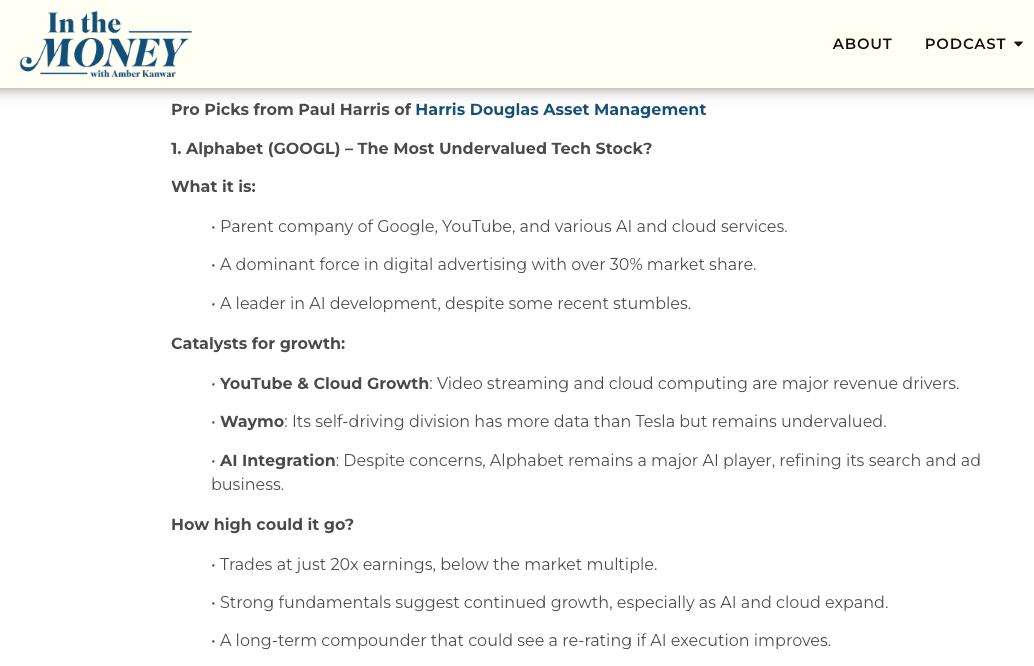 In the little sampling I have done, Amber just doesn't seem to take her disclosure obligations seriously. I asked her but she did not provide any instance where she did disclose a holding. However, in her year-end review last month, she mentioned that she had been a long-standing investor in Google/Alphabet, but that she decided to sell when her guest Dan Niles made bearish comments on it. This is the smoking gun I needed (to put the OSC in an awkward position, I hasten to add).