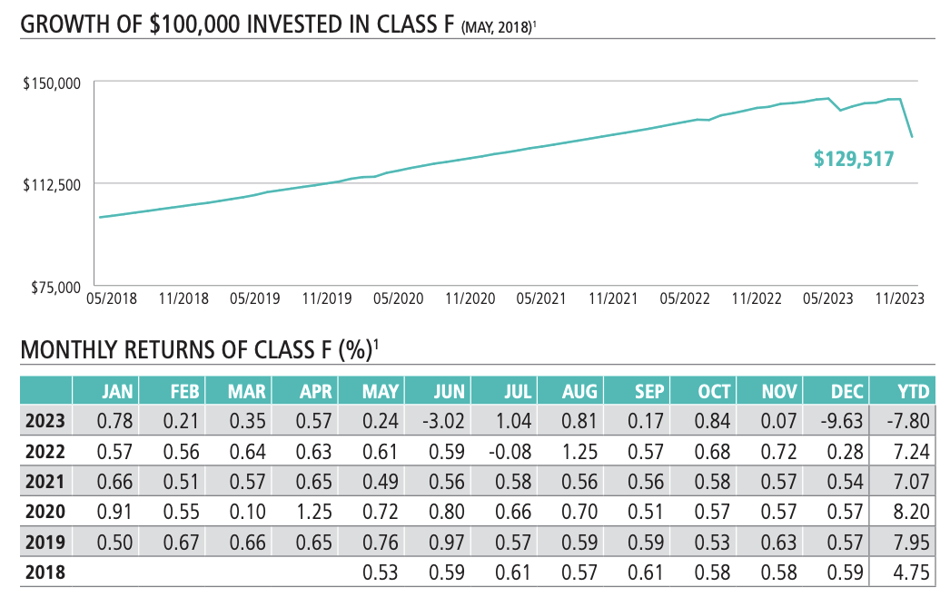 The Ninepoint Canadian Senior Debt Fund, where Waygar Capital acts as a loan consultant (the “Ninepoint-Waygar Fund”), took a massive 9.6% hit in December 2023. In a year where even the most conservative pensioner could have made 4-5% from a GIC, the Ninepoint-Waygar investors ended the year with a 7.8% loss. The fund has $260m in net assets.