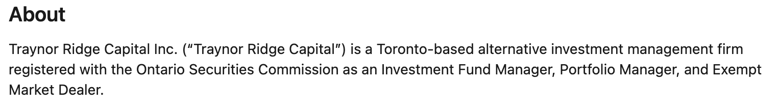Once they get the license, registrants often trade on the imprimatur of the regulator. Take a look at how Traynor Ridge described itself: