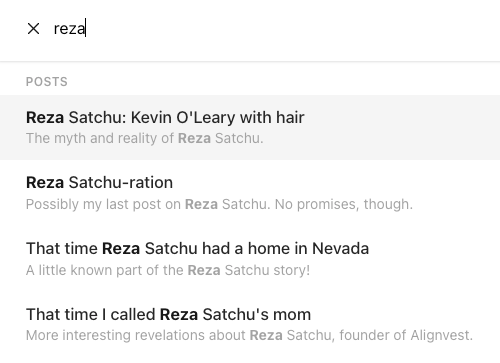 Reza Satchu is relevant to both the tech crowd and the many matrons of Rosedale who read me. He also made major incursions into the world of money management, though he has lately retrenched. In 2020, over the course of 4 posts, I tore down the myths surrounding Reza Satchu and wrote about some of his crappy deals and products. A good chunk of my writing was devoted to debunking Reza's origin myth of selling his "first startup" for nearly $1B: