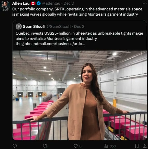 Some of the very same tech messiahs who made a big deal about the increase in the capital gain tax inclusion rate are applauding corporate welfare. In my view, these are purely self-serving positions without thinking of policy constraints, ie having their cake and eating it too. Let’s focus on VC Allen Lau who famously flipped his startup Wattpad to The Koreans. Here he is applauding one of his portfolio companies getting a US$25m investment from a state-owned entity in Quebec.
