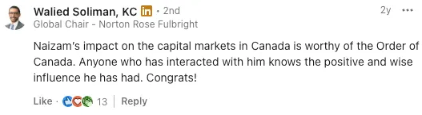 As for General Counsel Naizam Kanji, he’s an OSC lifer. Walied could tell you all about the last few meals Naizam has had, if I can judge by this LinkedIn post.