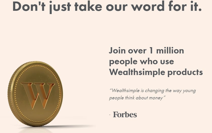 This is a trap. Strictly speaking, this sentence is accurate because it is merely quoting Wealthsimple (“It says”). But Wealthsimple should not be taken at its word. I am not the one saying that, Wealthsimple itself says on its homepage, in big bold letters: “Don’t just take our word for it”: